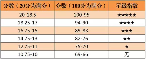 英國(guó)的《醇鑒》(Decanter,簡(jiǎn)稱 DE)雜志始創(chuàng)于 1975 年,是一本專門(mén)介紹世界葡萄酒及烈酒的專業(yè)雜志。由于英國(guó)幾乎不生產(chǎn)葡萄酒,加上其王室在歐洲的崇高地位,大眾普遍認(rèn)為英國(guó)對(duì)葡萄酒的評(píng)分會(huì)更客觀公正,因此《醇鑒》雜志在英語(yǔ)國(guó)家有著很大的影響力。該雜志評(píng)分采用 20 分制,0.25 分為最小單位,提供百分制換算,同時(shí)有從 0 星級(jí)到 5 星級(jí)的推薦規(guī)范: