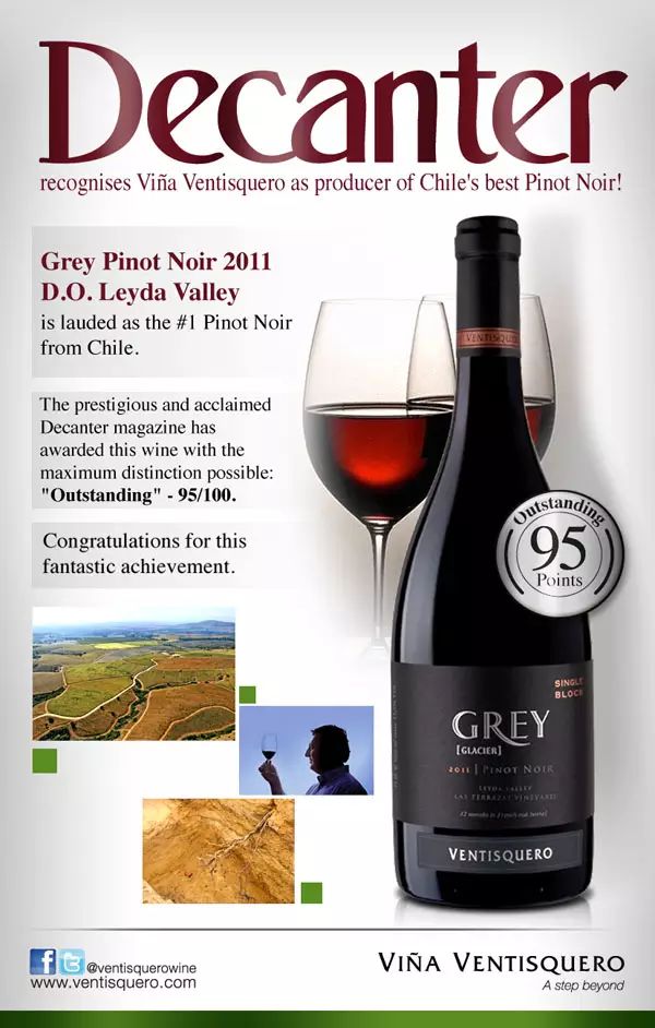 冰川酒莊格麗系列黑皮諾紅葡萄酒 2011 年份(Ventisquero Grey Pinot Noir)就獲過(guò)《醇鑒》的 95 分高分評(píng)價(jià),星級(jí)指數(shù) 5 顆星。此款酒散發(fā)黑莓、草莓的香氣,酸度適宜,經(jīng)橡木桶陳釀后單寧柔和,品質(zhì)優(yōu)異。