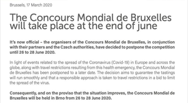 針對目前流行的Covid-19新型冠狀病毒對于全球的影響,在經過組委會與主辦地的積極協商后,現決定“2020(捷克·布爾諾)比利時布魯塞爾國際葡萄酒大獎賽”將延期至2020年6月26日至28日舉辦。同時,為了緩解報名企業的物流運輸壓力,全球樣品征集截止時間也將適...