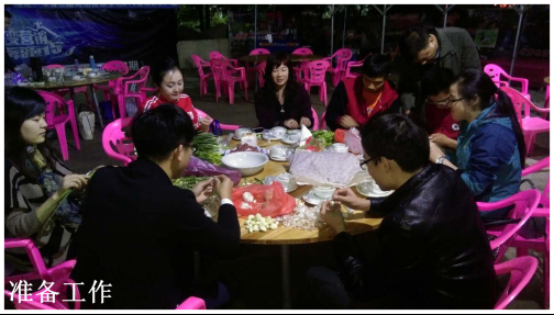 25號當(dāng)天,負(fù)責(zé)采購的同事根據(jù)大家寫好的菜單,提前采購好所需要的雞、鴨、魚、肉、蔬菜等各色原料,以及油鹽醬醋等各種調(diào)味品,開始做好活動前的各項準(zhǔn)備工作。當(dāng)天下午5點,大家在公司領(lǐng)導(dǎo)莊總、劉總、曾總的帶領(lǐng)下,陸續(xù)到達(dá)活動現(xiàn)場——位于南城水濂山腳下順風(fēng)山莊內(nèi)的蒙之味烤全羊原生態(tài)KTV燒烤廣場。